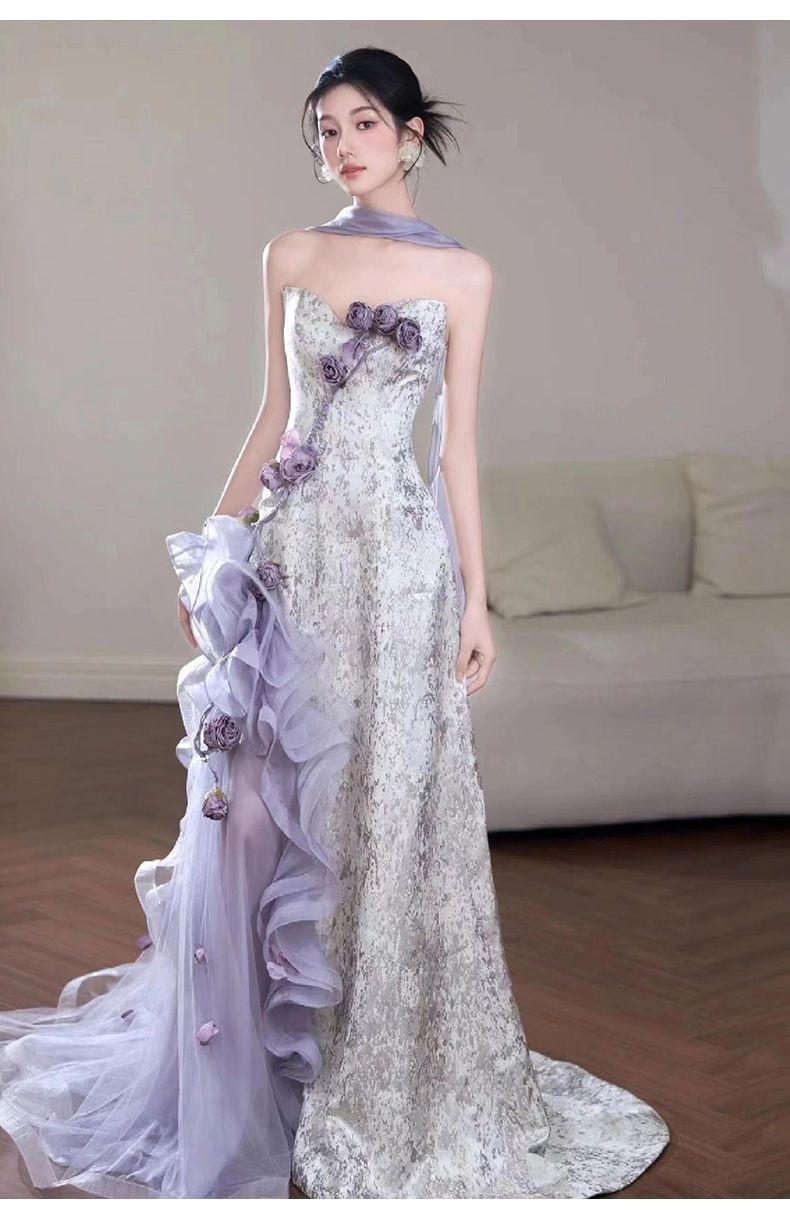 Purple Tube Top Morning Gowns Ethereal Design Wedding Dress Bride